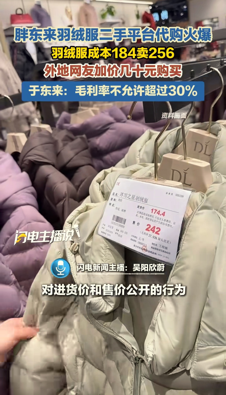 近日,河南胖东来的羽绒服在二手平台彻底火出圈了!成本184元的羽绒服卖256元,外地网友却抢着加价几十元找代购,这操作你见过没? 要说胖东来为啥这么“圈粉”,就俩字——实在。人家卖衣服,进货价、售价、面料成分都明明白白标着。就像那款成本184卖256的羽绒服,赚多少让你一眼看透,在满是“价格迷雾”的市场里,这坦诚劲儿谁能不爱?创始人于东来还放话,服装毛利率最高不能超30%,就这透明感,直接把消费者的心抓得死死的。 可火了之后,二手平台的代购们就开始“作妖”了。一款进货价303.9、售价393的...
